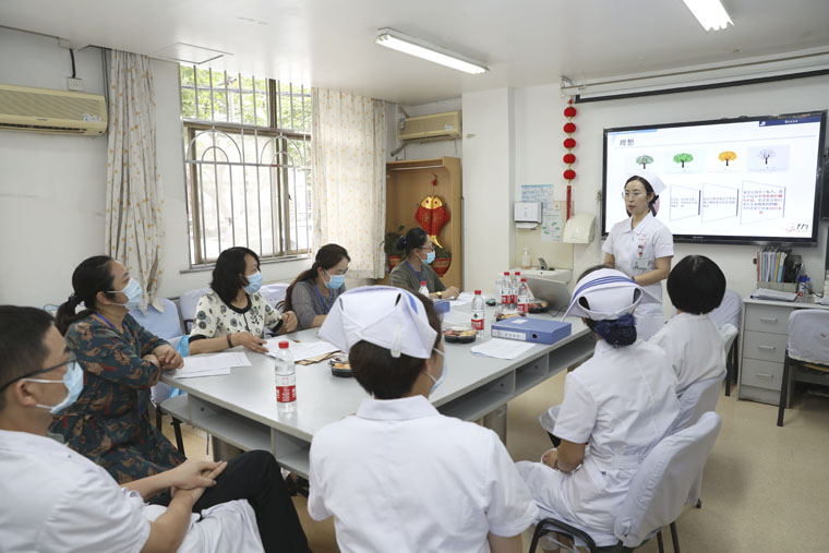 院领导高度重视本次评审,耿翠芝副院长、刘运江副院长积极指导、部署。在护理部的统筹安排下,李来有主任和陈璐、刘风侠、梁军利、赵晓燕、秦明祎副主任分别负责一个基地资料审核和现场评审准备工作。7月22日,20名评审专家逐一对申报基地进行查阅资料,查看设施、设备及信息系统,对带教师资的专科护理技术操作和授课能力进行测评等,他们充分肯定了我院在专科教学基地的管理体系、教学能力和基地建设等方面的扎实积淀,最终,重症、静疗、伤口造口失禁、安宁疗护4个专科成功通过评审。