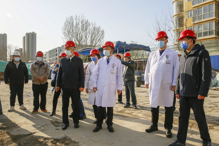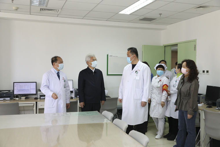 王校长一行实地参观考察了我院本部预检分诊、门诊大厅、胸二科、肾内科、急诊科、24小时自助服务系统、教学楼、科研中心、肿瘤研究所、发展成就展览等地,东院区急诊科、发热门诊、预检分诊、门诊大厅、乳腺中心、血液内科、教学楼、科研中心、河北省癌症中心主楼项目工地等地。在座谈中,我院党委书记单保恩以PPT的形式就医院整体工作进行汇报,党委副书记、院长徐金升主持会议,并与其他院领导就各自分管工作进行汇报,专家代表就科室发展等进行交流。