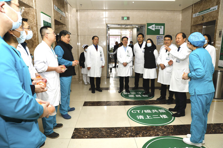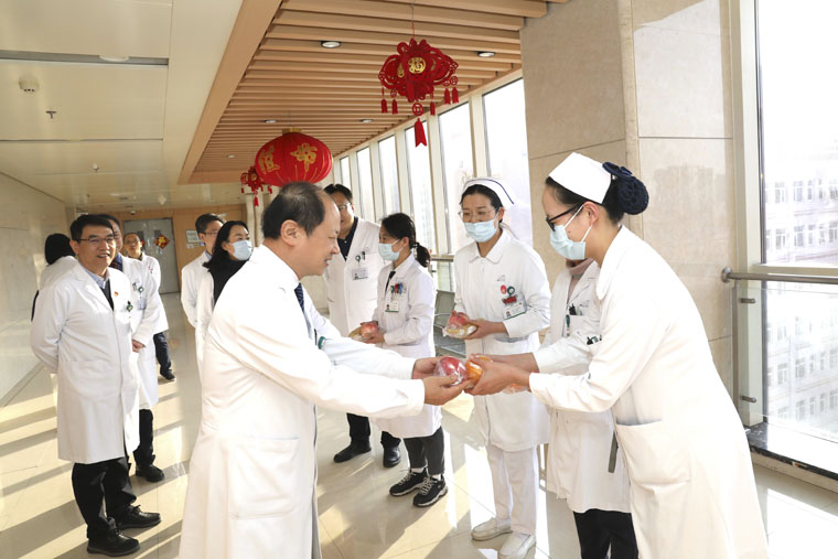 “大家辛苦了”“给大家拜年了”……2月9日,在除夕夜来临之际,我院党政领导单保恩、李晓玲、赵群、何宏涛、彭利、田晓玲、田子强、马景涛带领相关职能部门负责人,在两院区看望慰问坚守岗位的广大职工,向奋战在一线、倾心服务患者的医务人员表示衷心感谢,送上诚挚的新春祝福和慰问品。