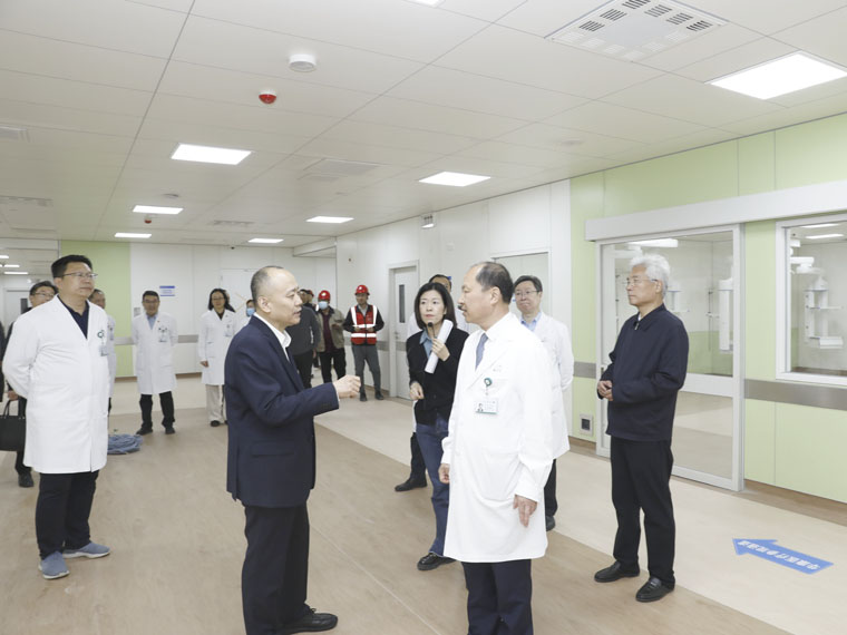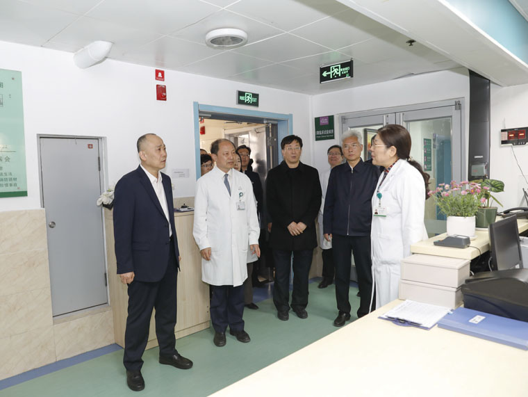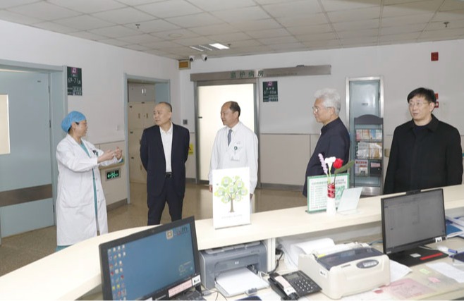3月28日,河北医科大学党委书记姜建明,校长王宝山,党委副书记、纪委书记傅英会等校领导来我院东院区实地调研,我院党委书记单保恩带领全体在院领导和相关职能部门负责人陪同考察,并深入进行座谈交流。