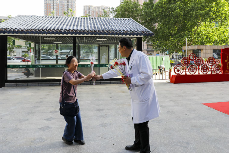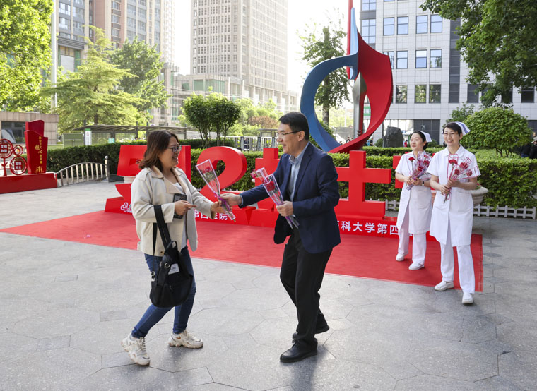 5月11日清晨,我院党委书记单保恩,副院长何宏涛、彭利、马景涛和护理部成员分别在两院区前庭广场,等待每一位在晨露微光中奔赴工作岗位的护理兄弟姐妹,向他(她)们献上一支美丽的康乃馨,亲切地道一声:“你辛苦啦!”大家纷纷表示,谢谢院领导和同事们的关心、鼓励,将认真履行关爱生命、守护健康的专业职责,为持续提升广大患者就医体验,助推医院实现高质量发展而不懈奋斗。