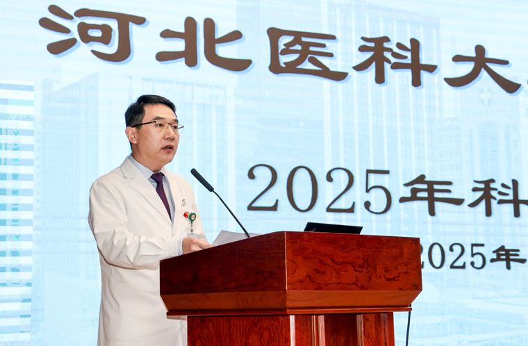 2月13日,我院在本部新医技病房楼学术报告厅召开了2025年科研工作会。河北医科大学人事处处长张景坤,科技处处长申海涛、副处长张荣,教务处处长尚丹丹到会指导工作,全体院领导、临床医技科室及相关职能部门负责人参加会议。会议旨在深入贯彻落实河北医科大学第四次党代会精神,以国家自然科学基金工作为抓手,统一思想、凝聚共识,奋力开创医院科研工作新局面。常务副院长何宏涛主持会议。