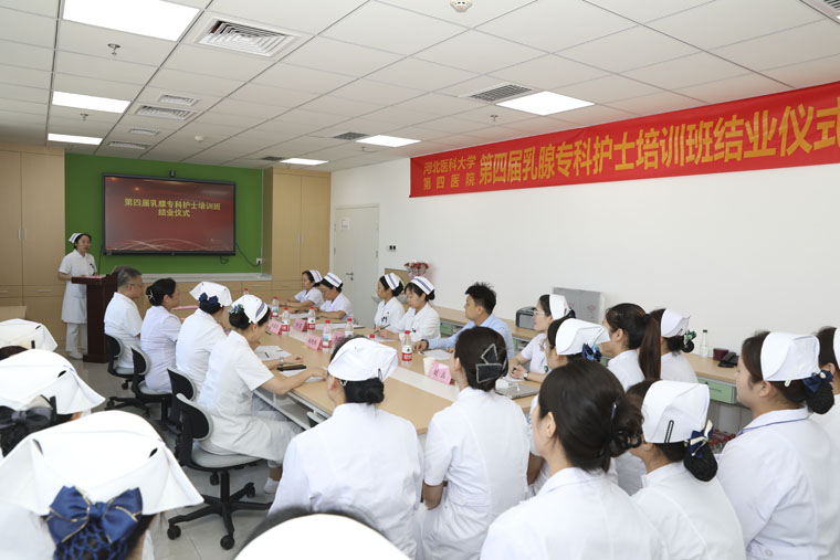 近日,由河北省临床肿瘤学会主办、河北省乳腺疾病诊治中心(我院乳腺中心)承办的第四届“乳腺专科护士培训班”结业仪式在东院区举行。来自衡水、保定、石家庄等地的10名护理骨干经过两周系统培训,全部通过考核并获颁结业证书,其中1名学员获评“优秀学员”,将为全省乳腺疾病护理服务注入更多专业力量。